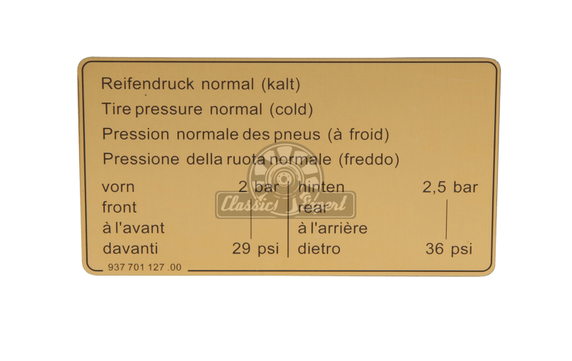 Naklejka Ciśnienie W Oponach do Porsche 911 (83-89)