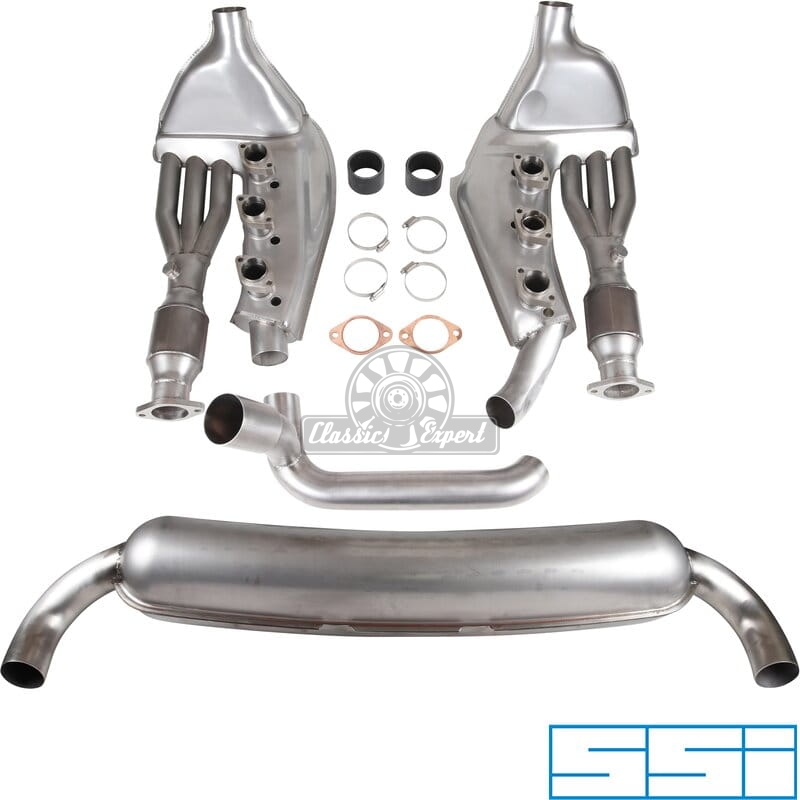 Zestaw wydechowy, Sport, z dwoma rurami wydechowymi ¯70 mm, dwoma wlotami, wymiennikami ciepla ¯41/¯60 mm i katalizatorami. Wykonany ze stali nierdzewnej