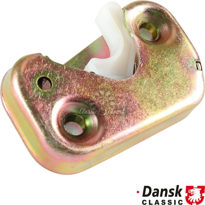 Blacha zaczepowa do drzwi, prawa. Wykonana ze stali ocynkowanej na zolto