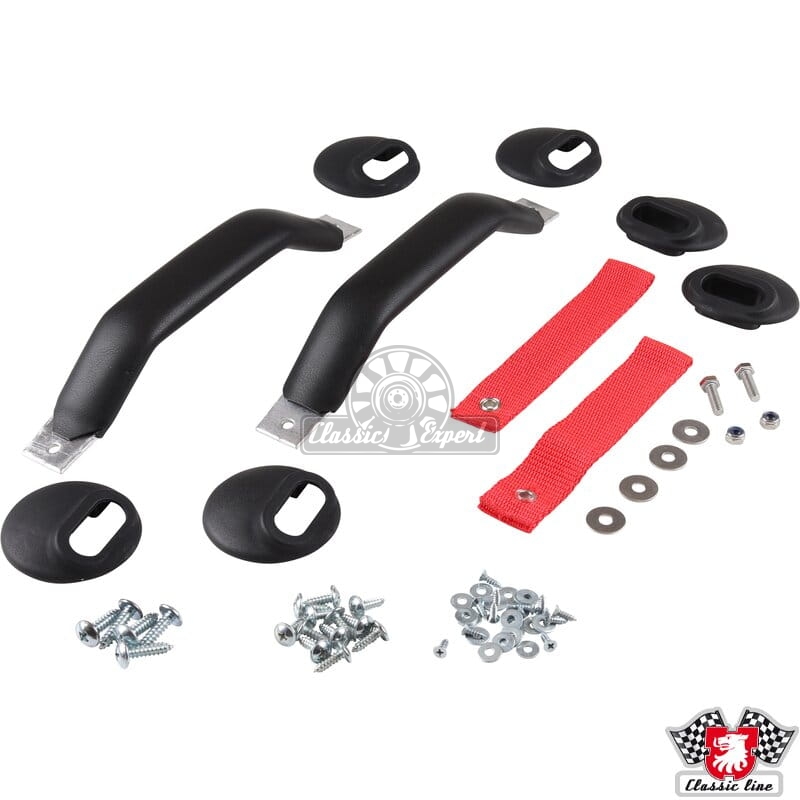 Komplet klamek RS z czerwonymi paskami i czarnymi uchwytami do Porsche 911 (74-89), 964 (88-94), 993 (93-97)