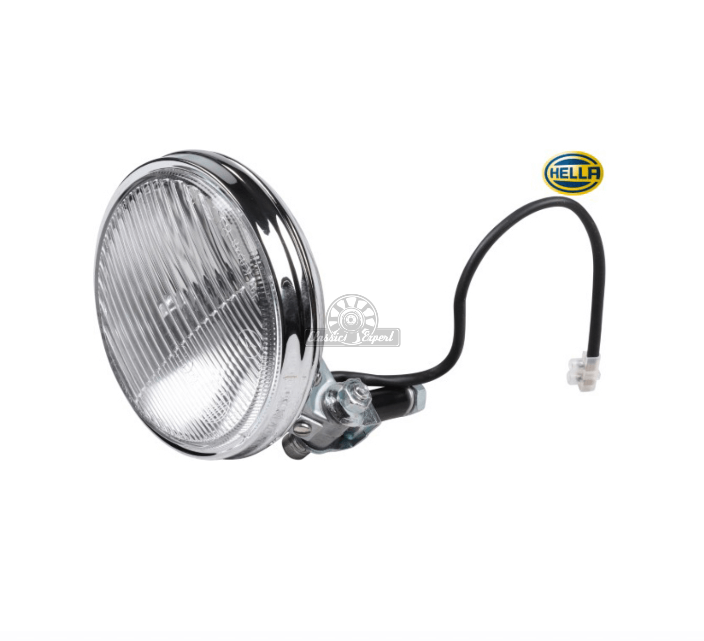 Reflektor Przeciwmgłowy Lewy/Prawy Chrom (z żarówką, ze znakiem E) do Porsche 911, 912, 914 (63-73,65-70, 69-76)