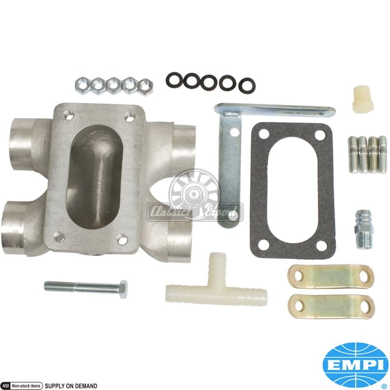 Zestaw kolektora dolotowego progresywnego z rurkami i wspornikiem. Do EMPI EPC 32/36F, Weber 32/36 DFEV